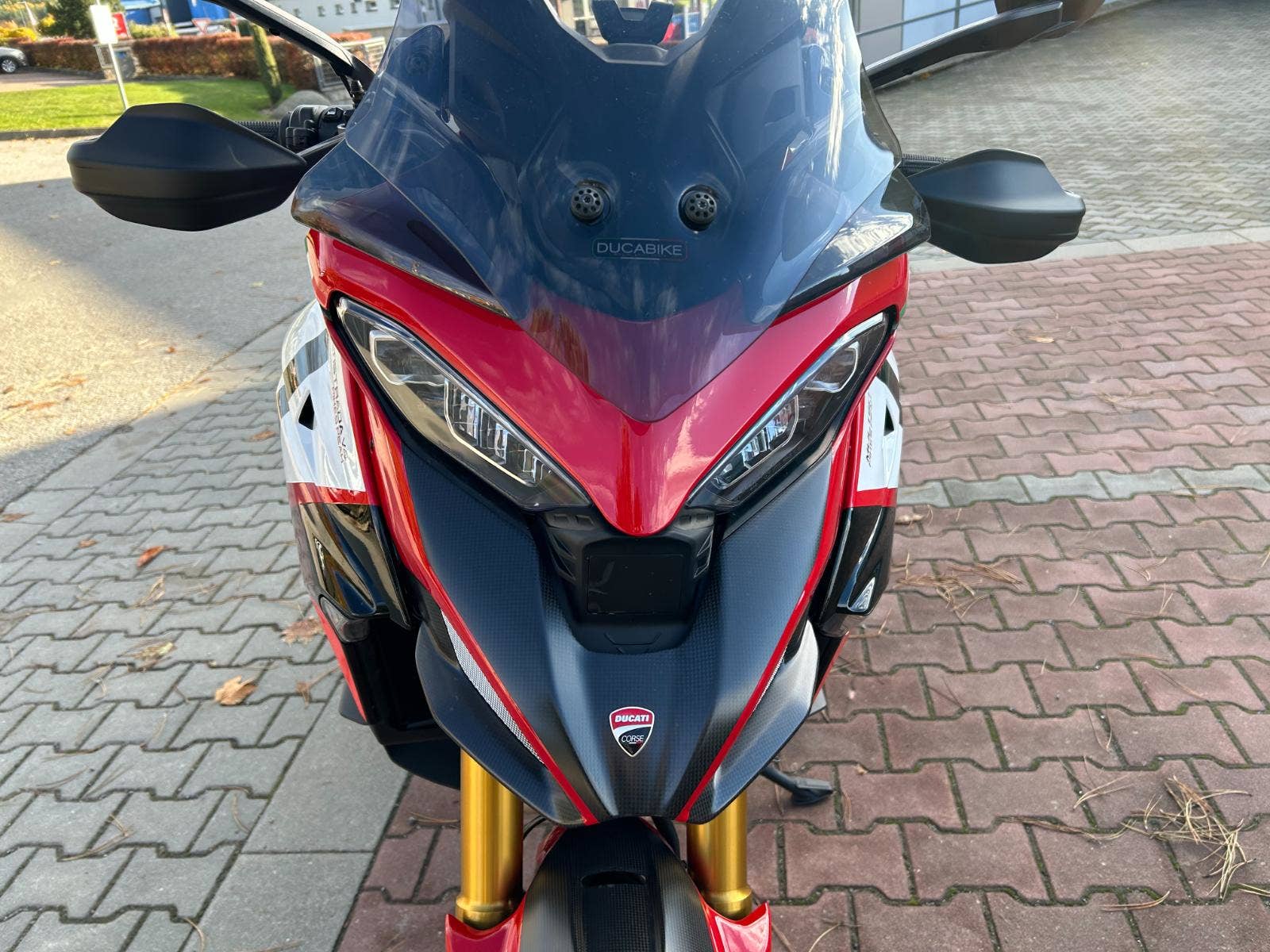 - jízdní režimy, ABS Bosch s funkcí brždění v náklonu, Ducati kontrola trakce (DTC), Ducati Wheelie kontrola (DWC), asistent rozjezdů (VHC), tempomat, bezklíčové ovládání Hands-Free, podsvícené přepínače na řídítkách, automatická deaktivace směrových světel, plně barevný 6,5“ TFT displej s funkcí Ducati Connect a navigačním systémem, rychlořazení up/down (DQS), Full LED osvětlení s funkcí přisvícení do zatáčky, karbonový přední blatník, homologovaná koncovka výfuku Akrapovic