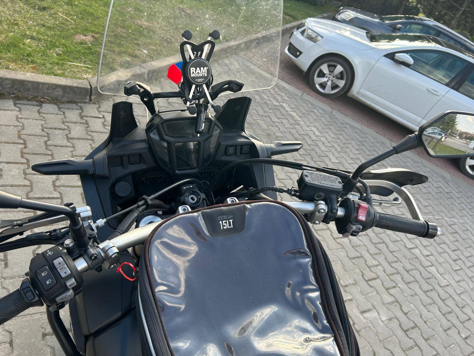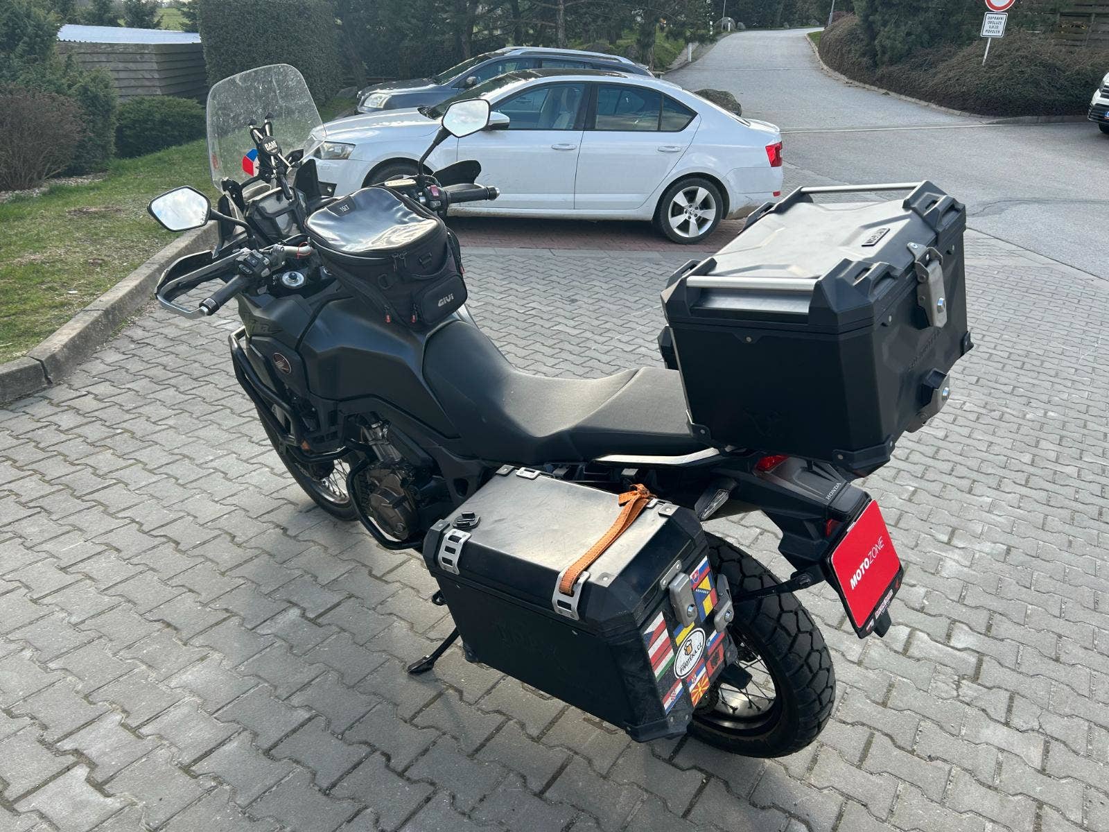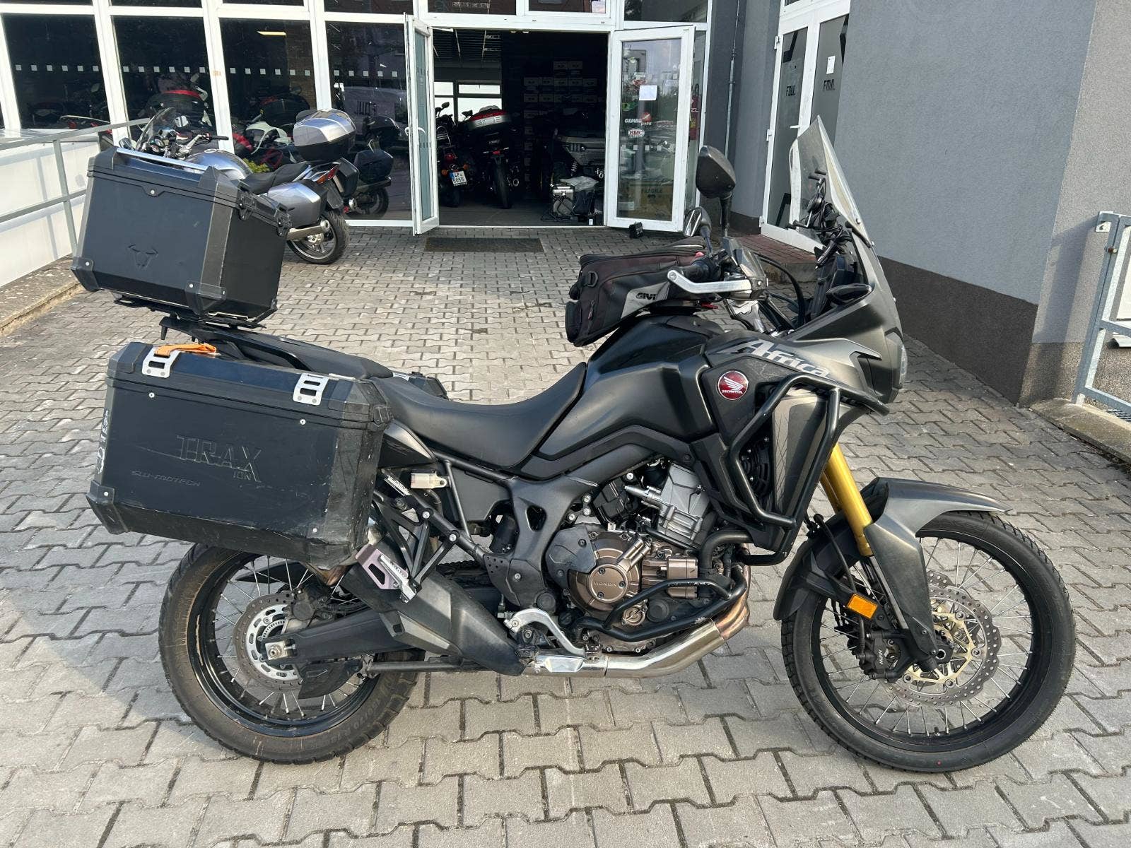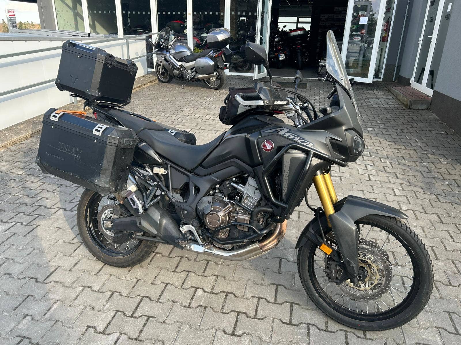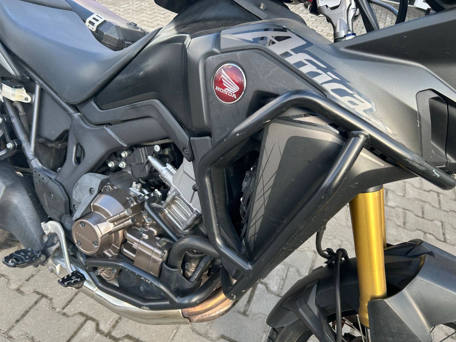 - padací rám, kryty rukojeťí, DCT převodovka, centrální stojan, hliníkové kufry SW Motech, vyšší plexi + originál