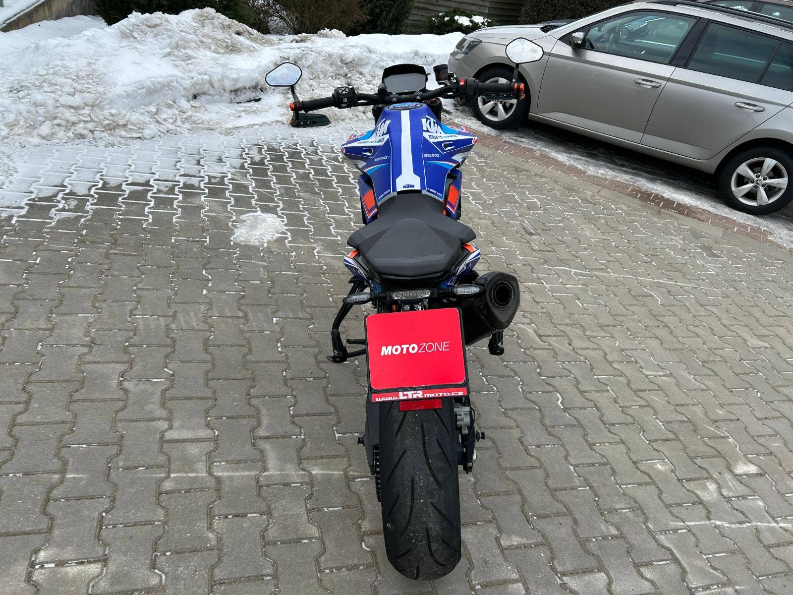 - ve 29500 velký servis, pneu a destičky 90%, laděný výfuk Akrapovič, zásuvka, kryty rukou, zrcátka v řidítkách, polepy DRB Graphix, proužky na kolech, racing držák SPZ, kryty vík motoru