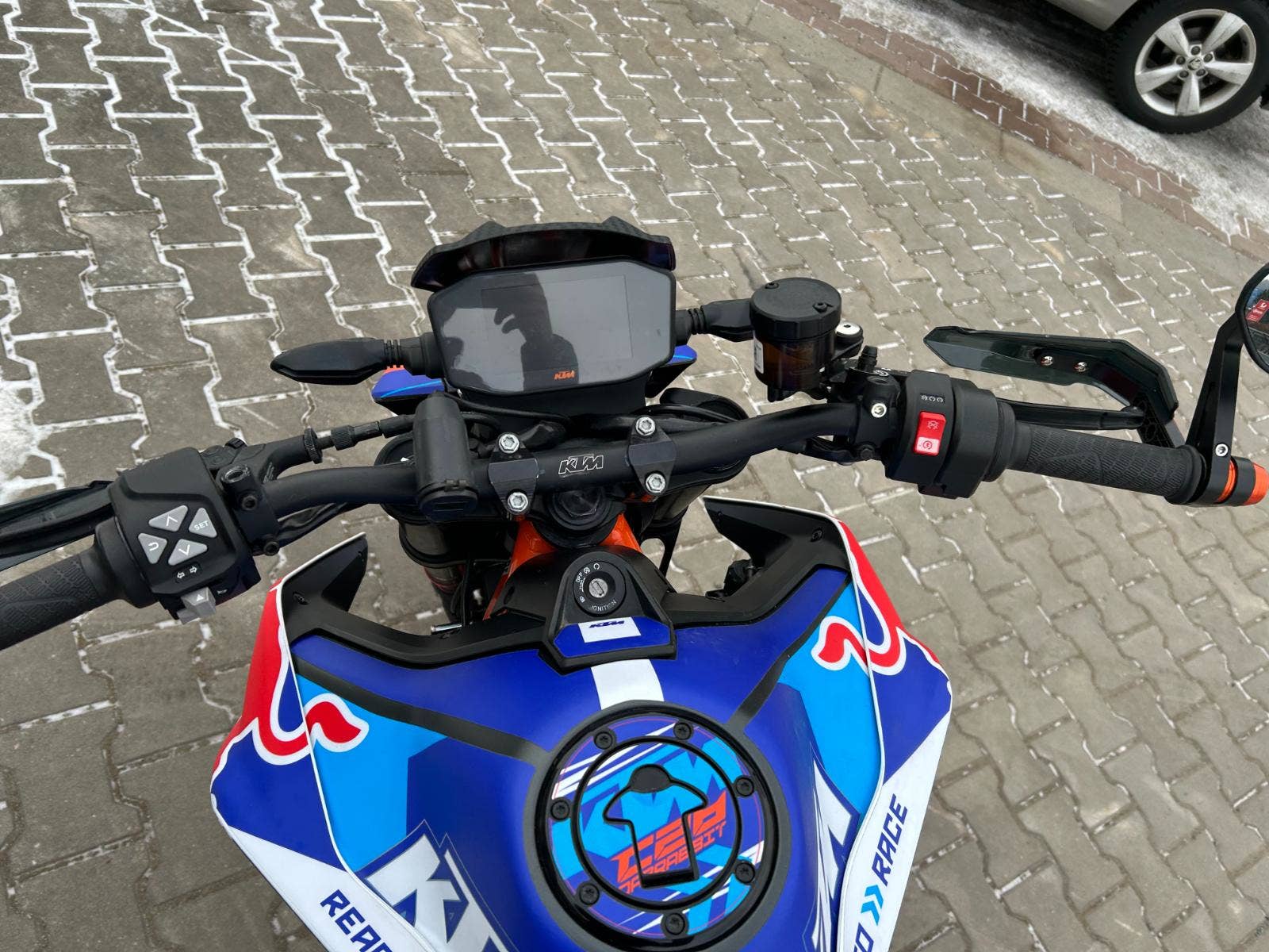- ve 29500 velký servis, pneu a destičky 90%, laděný výfuk Akrapovič, zásuvka, kryty rukou, zrcátka v řidítkách, polepy DRB Graphix, proužky na kolech, racing držák SPZ, kryty vík motoru