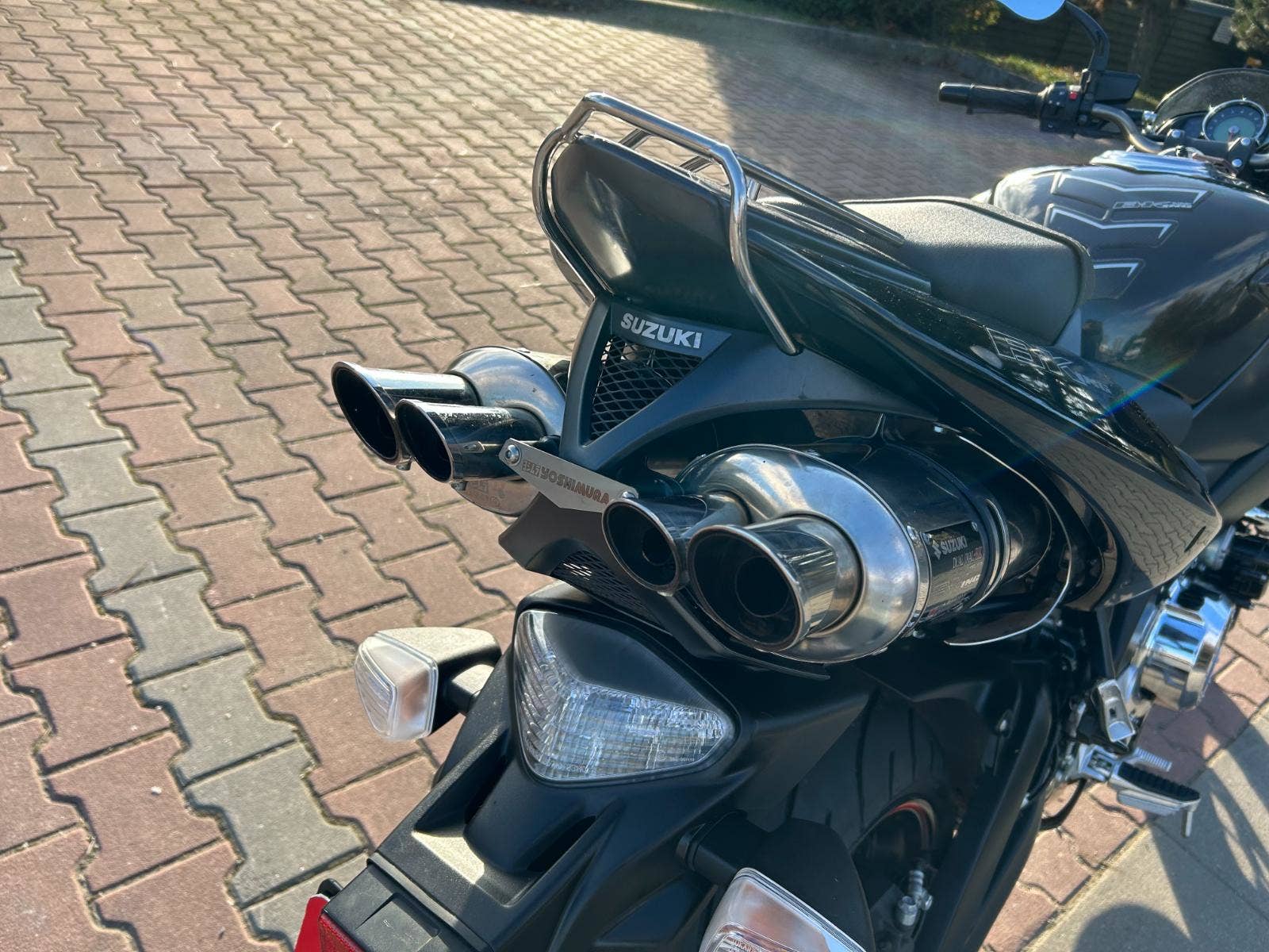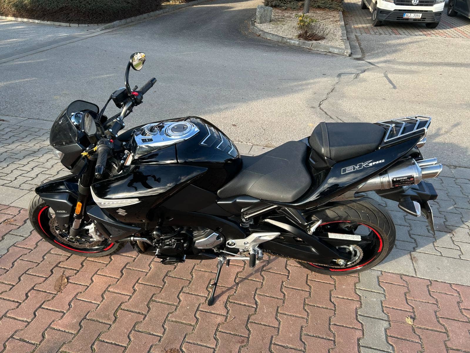 - servisní knížka, 2x klíč, originál laděné výfuky Yoshimura B-king, padáky, proužky na kolech, plexi, racing zrcátka, stavitelné páčky