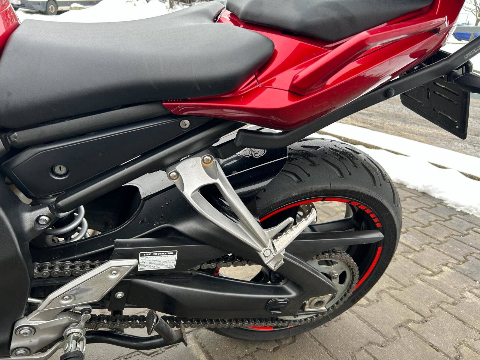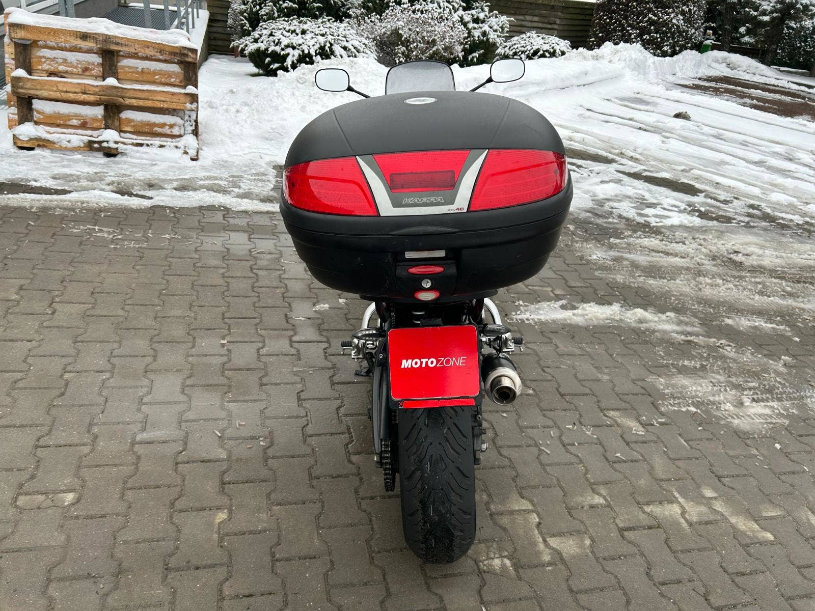 - perfektní stav, zánovní pneu, homologovaný výfuk Mivv plus originál, krátký držák RZ plus riginál, homologované led blinkry, top case Kappa, padáky