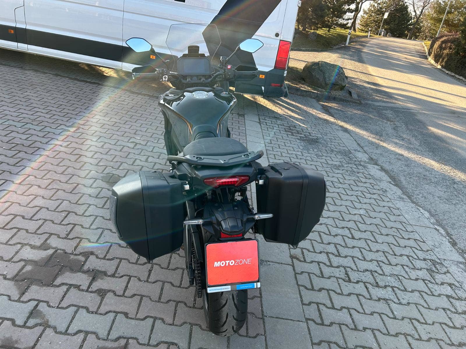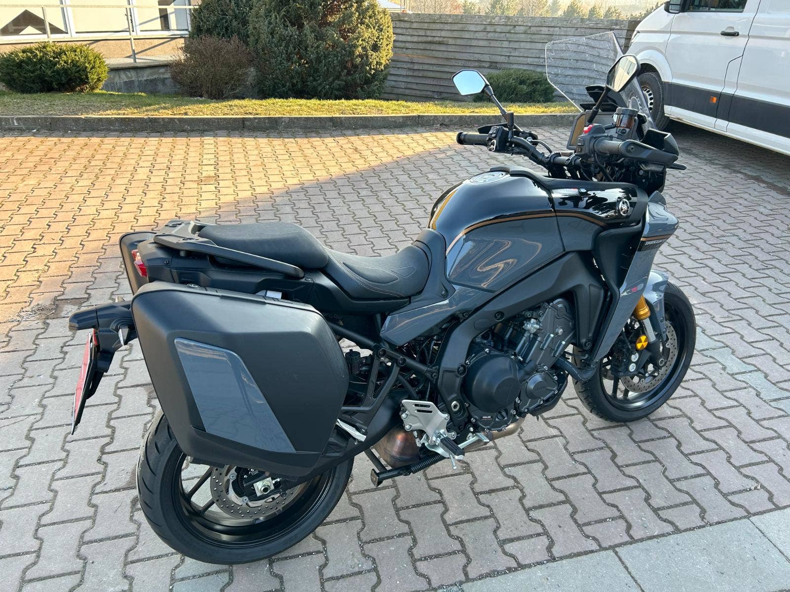 Moto má komplet sadu tří kufrů, padací rám, vyhřívané rukojetě, tempomat, quickshift.